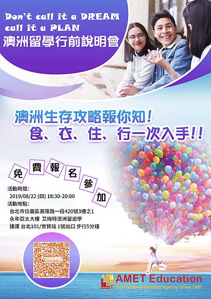 8/22 (四) 18:30 - 20:00 澳洲留學 免費行前說明會報名連結:https://forms.gle/kZ179BELVtqcBhqJ8